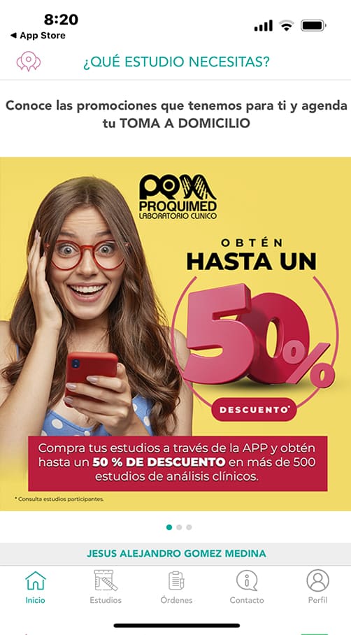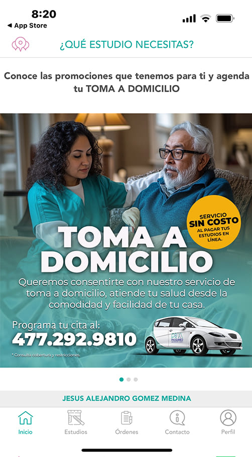 APP Móvil Proquimedproquimed2026-02-19T06:59:44+00:00 APP Móvil Proquimed InicioAPP Móvil Proquimed Descarga o Actualiza la App Proquimed Con esta nueva actualización podrás: Seleccionar y pagar tus estudios de forma rápida y segura.Agendar tus citas a domicilio, de manera fácil y sin complicaciones.Obtendrás una interpretación complementaria de tus resultados, con nuestro asesor de inteligencia artificial*, directamente en la aplicación. ¡Disponible en App Store, Play Store y AppGallery!